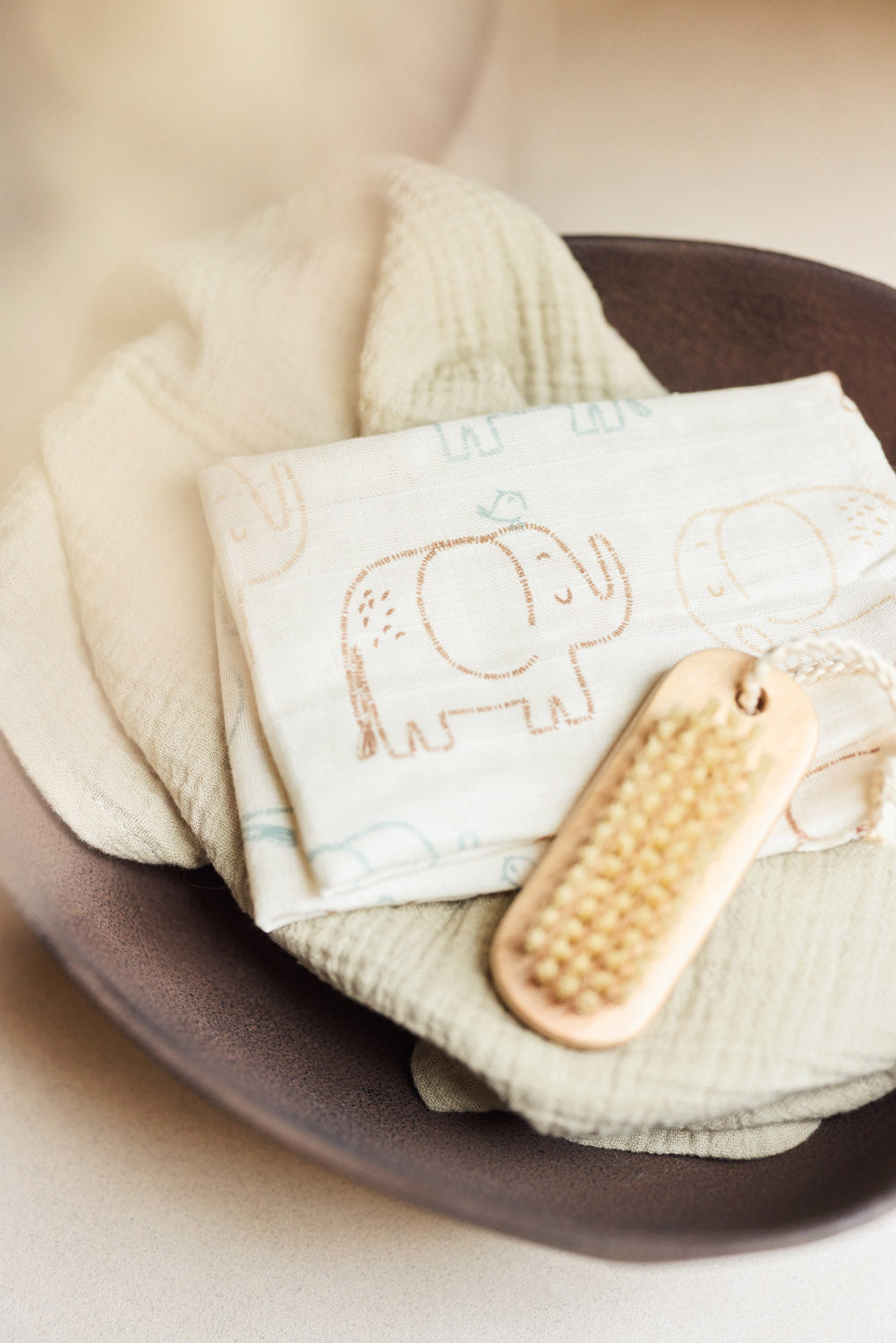 Ein Mulltuch ist ein Baumwolltuch, das sich perfekt für die Pflege deines Babys eignet. Die spezielle Webart des Stoffes macht das Tuch sehr dünn, leicht und weich. Ein Mulltuch nimmt Wasser und Feuchtigkeit sehr gut auf, schont die empfindliche Babyhaut und kann daher in vielen Situationen eingesetzt werden. In der Vergangenheit wurden Mulltücher sogar als Windeln verwendet.