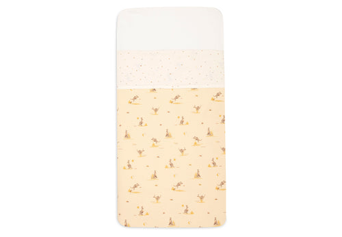 Dieses Bettlaken ist mit dem Dusty Dot-Motiv bedruckt. Zwischen den Punkten verstecken sich kleine Figuren, sodass es immer wieder etwas Neues zu entdecken gibt. Es verleiht dem Babyzimmer eine ruhige Atmosphäre mit verspielten Details. Erhältlich in verschiedenen Größen.