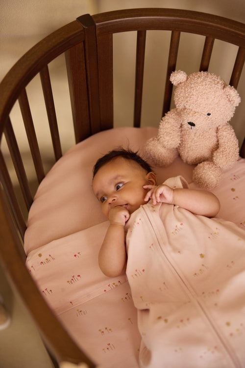 Diese liebevolle Decke aus dem Pretty Picnic Thema ist mit einem All-over-Print aus kleinen Blümchen und Bienchen auf einem Blush-farbenen Hintergrund verziert. Der weiche Jerseystoff und die harmonische Farbkombination verleihen der Decke einen verspielten und zugleich verträumten Look. Perfekt, um das Babybettchen zu schmücken, und wunderbar mit anderen Artikeln aus dem Pretty Picnic Thema zu kombinieren. Eine zeitlose Ergänzung für das Babyzimmer, die für einen Hauch von Weichheit und Fantasie sorgt!
