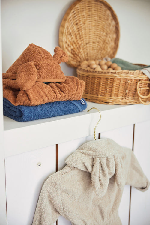 Das Kapuzenhandtuch ist ideal nach dem Baden oder Schwimmen. Sehr stilvoll und aus schönem Frotteestoff, darin kannst du dein Baby schön warm einmummeln, wenn es aus dem Wasser kommt. Die Kapuze ziehst du über den Kopf, damit dein Baby keine Wärme verliert. Bequem! Der weiche Frotteestoff ist sanft zu der empfindlichen Babyhaut und absorbiert gut die Feuchtigkeit, sodass das Abtrocknen im Handumdrehen erledigt ist. Nach dem Gebrauch hängst du es einfach an der Schlaufe auf. Welche Farbe wählst du?
