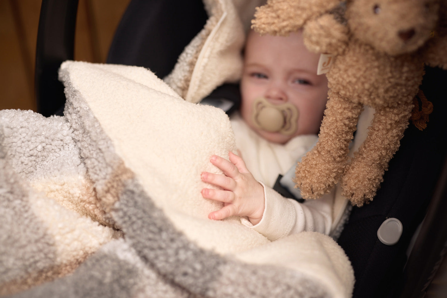 Ich bin super weich, super süß und viel zu niedlich, um mich liegen zu lassen! Spiele mit meinen Ohren und entdecke ein knisterndes Geräusch oder erkunde alle Etiketten und Bändchen, die an meinem Körper hängen. Mama und Papa können mich ganz einfach an den Kinderwagen, Autositz oder Laufstall hängen, damit du mit mir spielen kannst. Dieses niedliche Bouclé-Kaninchen ist wunderbar zum Verschenken und noch schöner zum Bekommen.