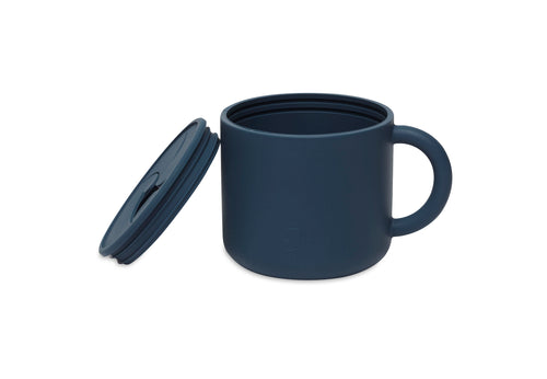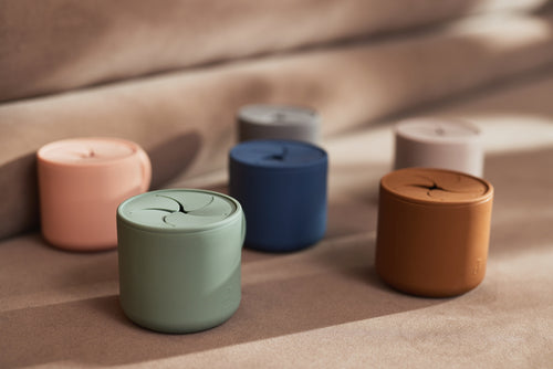 Dieser Snackbecher ist aus Silikon hergestellt, was ihn flexibel und spülmaschinen-, backofen- und gefrierfest macht. So kannst du Snacks ganz einfach im Gefrierschrank aufbewahren, sie in der Mikrowelle oder im Backofen aufwärmen und den Becher nach dem Gebrauch hygienisch in der Spülmaschine reinigen. Der Snackbecher hat ein Ohr, das es deinem Schatz leicht macht, ihn zu halten. Denn das wollen die Kleinen: alles selbst machen!