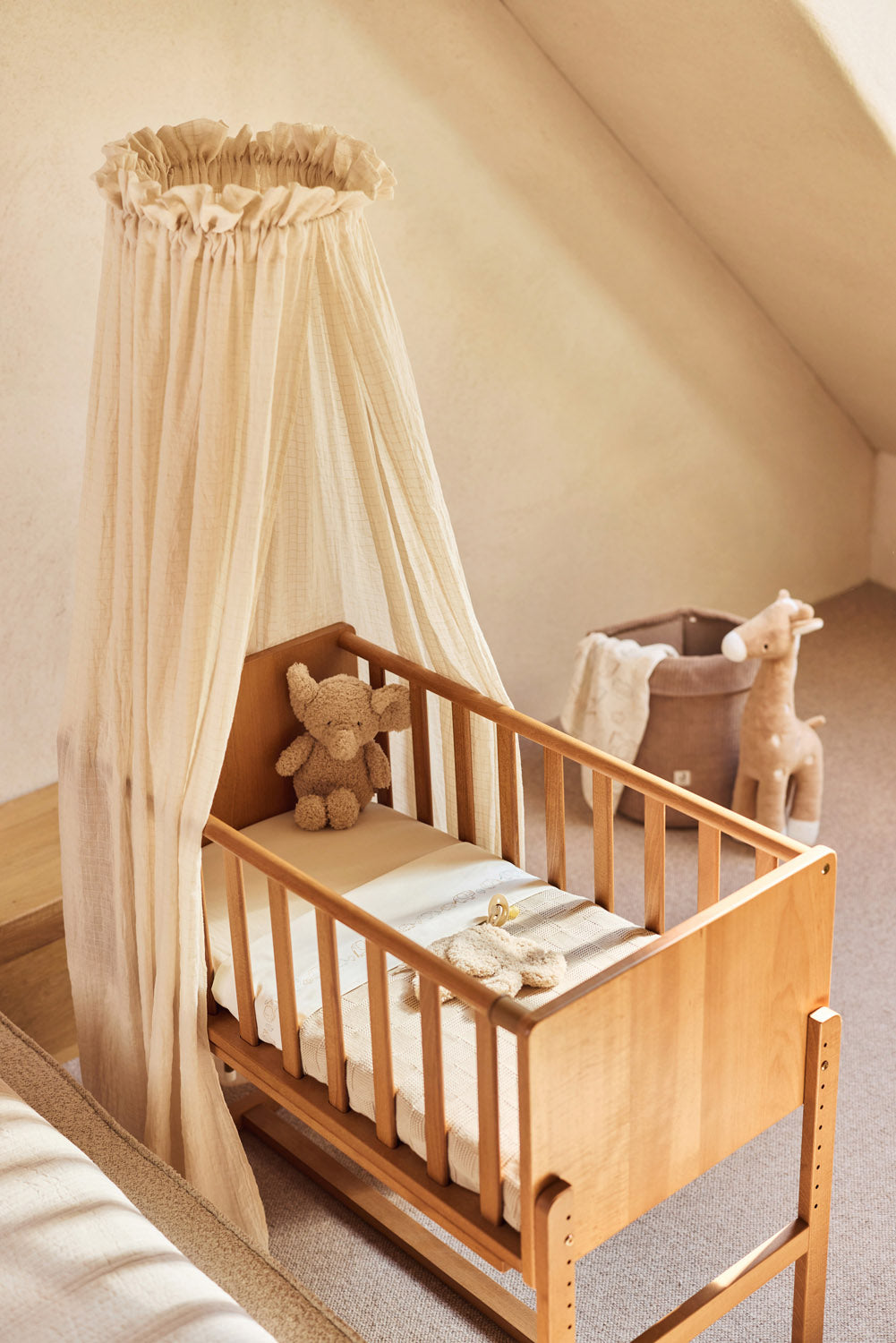 The mosquito nets and canopies are available in the most trendy colours to match any nursery. If your children are a bit older, you can also create a cosy play area with a mosquito net. Hang up a nice mosquito net, put a teddy or knitted playpen mat on the floor and finish off the corner with a children's armchair from our collection. A guaranteed visual and functional success!