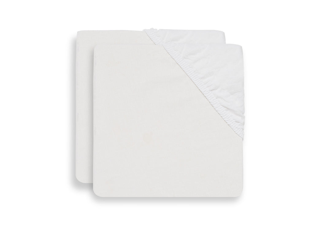 You can also find cot fitted sheets at Jollein. The fitted sheets are made from jersey cotton and are therefore wonderfully soft and stretchy. The fitted sheets for cots from Jollein have a size of 60 x 120 cm, so they fit all standard-sized cot mattresses.
