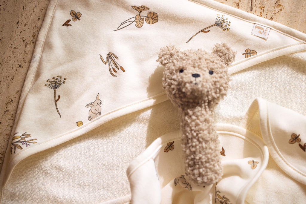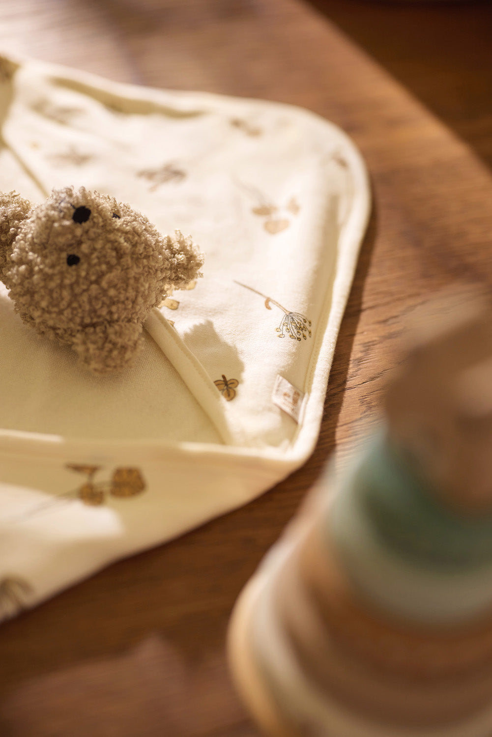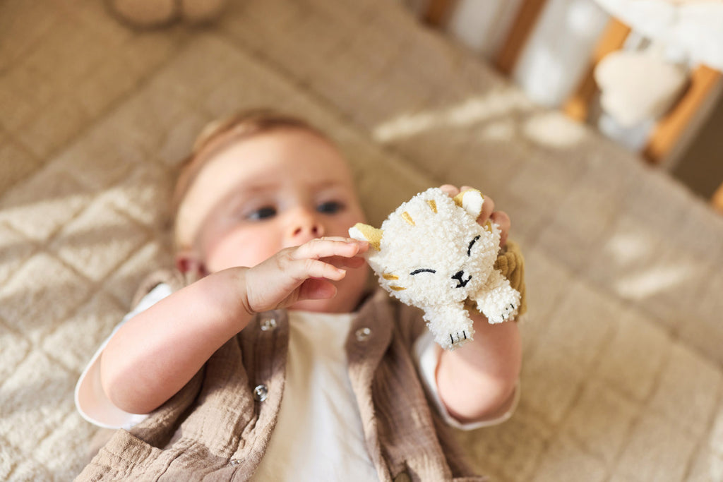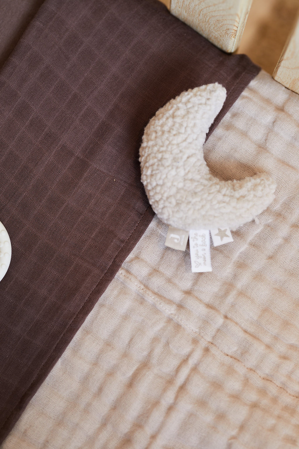 Jollein has the cutest rattle toys with animals or soft moons made of teddy fabric. There is also a rattle with a wooden teething ring, providing pain relief as well as distraction. Rattle toys are also great to give as gifts! Why not also get a cuddle cloth to give further comfort to your little one?