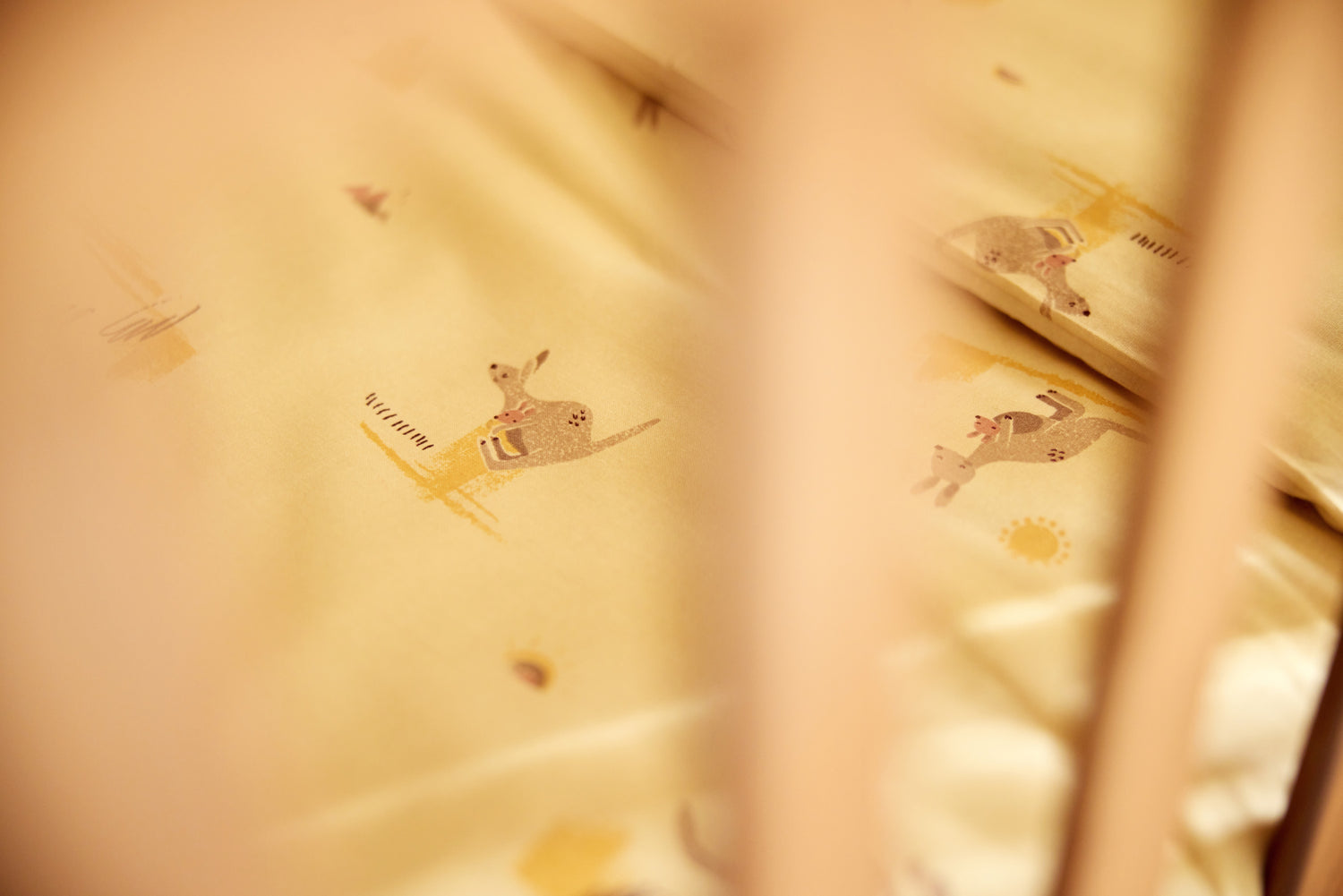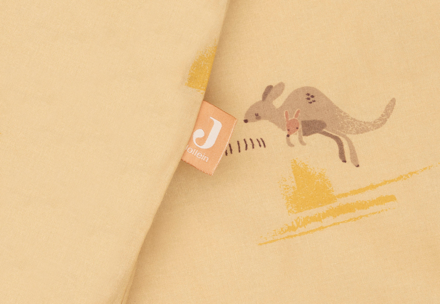 This duvet cover brings a sense of comfort and security to the kids’ room. The all-over print with kangaroos and their little ones in the pouch radiates warmth and togetherness, while the soft vanilla shade with natural tones creates a soothing atmosphere. Made of cotton, the cover feels airy and comfortable, ensuring a restful night’s sleep for your child. Both the duvet cover and the matching pillowcase feature the same sweet print on both sides.