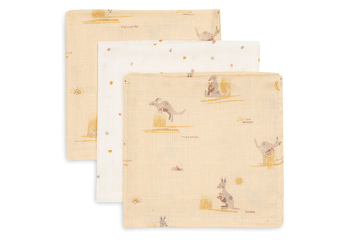 Muslin mouth cloths are a real must-have! They are small and light, yet absorb surprisingly well. Wipe a little mouth or dab a small spot, and you’re good to go. Easy to carry in the diaper bag, so you always have one on hand when out and about. Sold in a set of 3, perfect for daily use.
