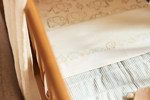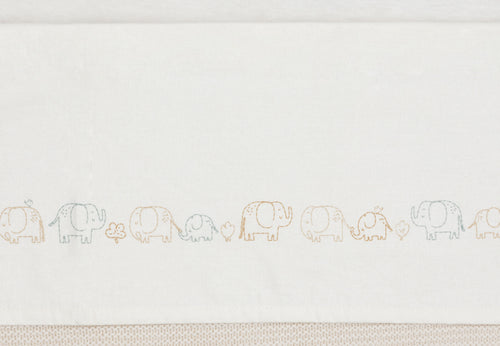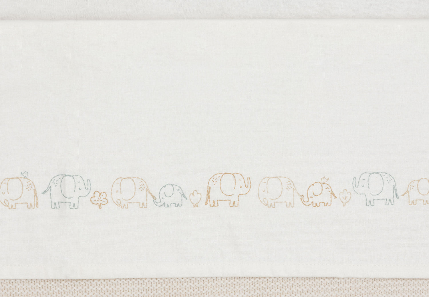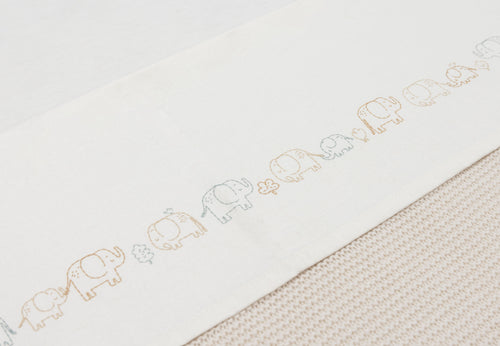 Ce drap présente une adorable parade d’éléphants sur toute la longueur. Les éléphants sont dans des tons doux comme Milky Coffee, Sea Green et Biscuit, sur un fond oatmeal pour une ambiance chaleureuse et paisible. Parfait pour la chambre de bébé et assorti à la collection Elephant Tales !