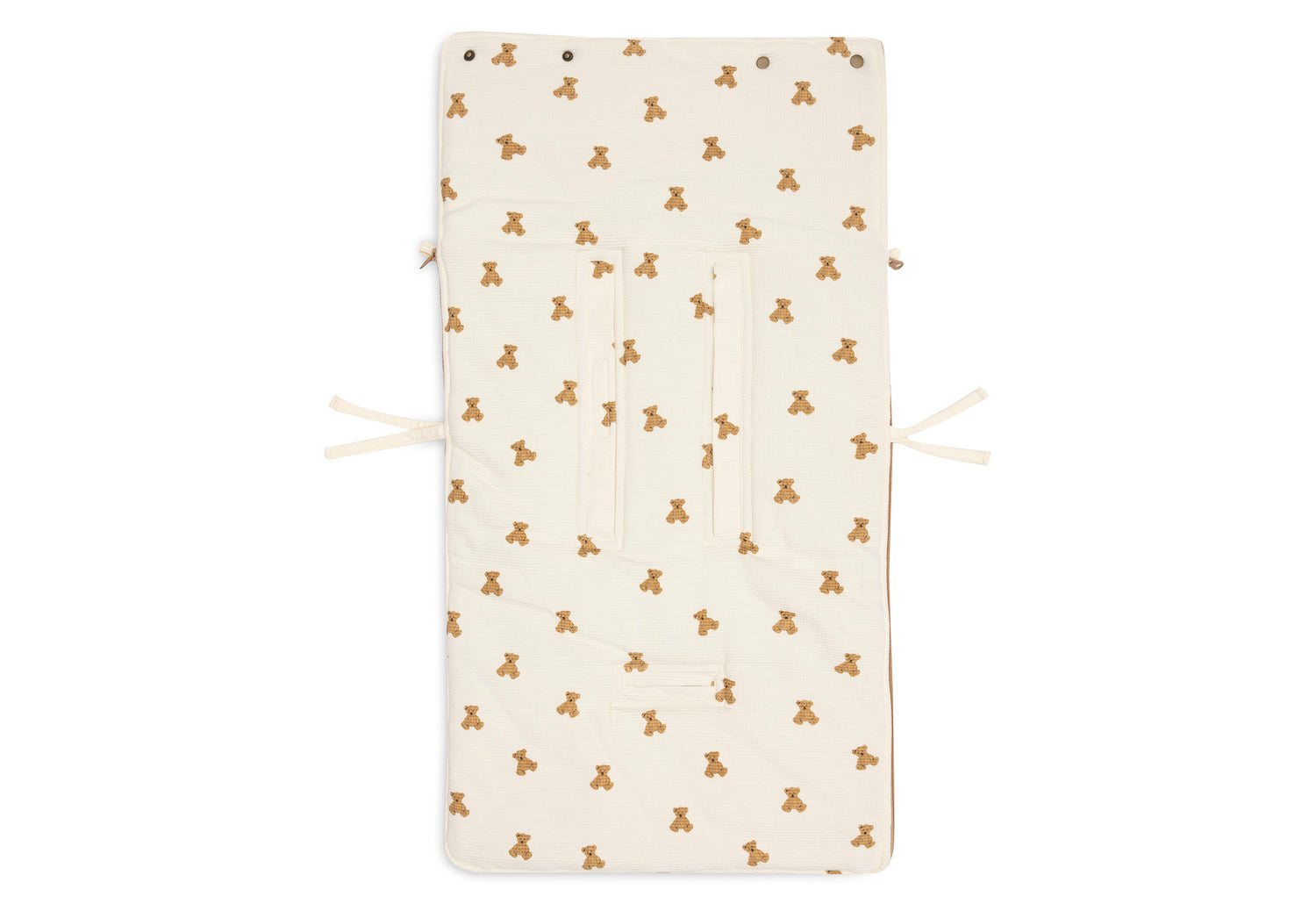 Le compagnon le plus adorable est de retour, et maintenant en version mini ! Ce Nid d’Ange présente un imprimé complet de petits oursons sur un fond apaisant, apportant une touche douce et familière lors de vos déplacements. Compatible avec les harnais 3 et 5 points, il convient à la plupart des sièges auto groupe 0+ et des poussettes. Assurez-vous toujours que le nid d’ange est bien fixé dans le siège auto, afin que votre tout-petit soit attaché en toute sécurité et confortablement installé. Les fermetures éclair permettent d’ouvrir et de fermer facilement, pour installer ou sortir rapidement votre bébé. Parfait pour les journées froides, il garde votre petit bien au chaud et confortable.