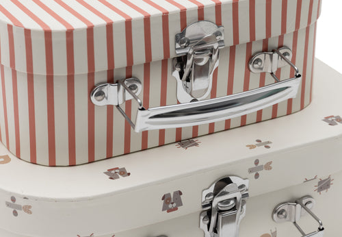 Ces valisettes de la collection Animal Friends sont parfaites pour votre enfant ! La valise extérieure arbore un imprimé joyeux, tandis que la valise intérieure est de couleur soft terra avec un petit chien adorable. L’intérieur présente un motif à carreaux Milky Coffee et la mention « belongs to ». Idéal pour ranger des petits objets ou comme décoration originale dans la chambre de bébé !